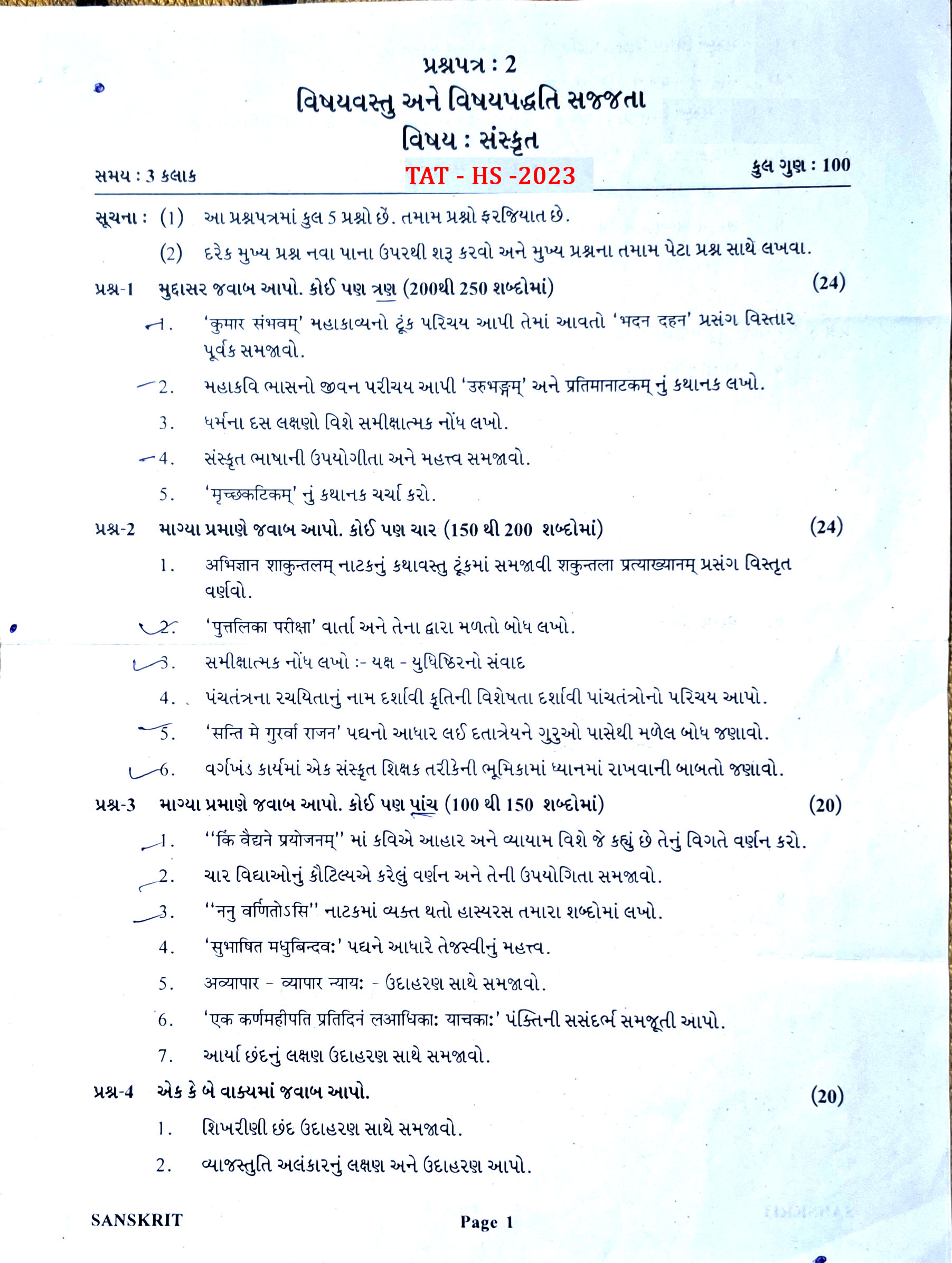 TAT HS SANSKRIT 2023 PAPER SANSKRIT TAT HS 2023 સંસ્કૃત પ્રશ્ન પત્ર – 2 વિષયવસ્તુ અને વિષય પદ્ધતિ Read more articles Previous Postધોરણ 12 ગુજરાતી બોર્ડ 2025 પેપર || Std 12 Gujarati Board 2025 Paper || Next PostGUJARATI TAT HS 2023 ગુજરાતી ભાષા સજ્જતા પ્રશ્નપત્ર – 1 You Might Also Like GUJARATI TAT HS 2023 ગુજરાતી ભાષા સજ્જતા પ્રશ્નપત્ર – 1 November 16, 2025 Leave a Reply Cancel replyCommentEnter your name or username to comment Enter your email address to comment Enter your website URL (optional) Save my name, email, and website in this browser for the next time I comment. Δ Post published:November 5, 2025 Post category:TAT Post comments:0 Comments