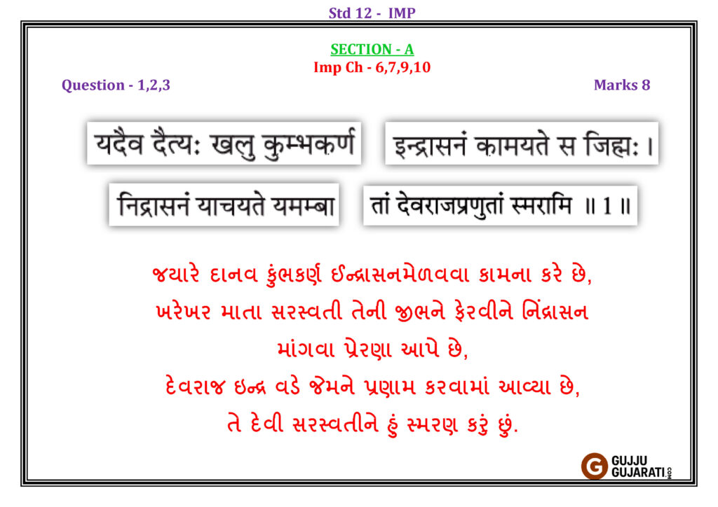 Std 12 Arts | Sanskrit imP | Section A | March 2026 Board Exam | GSEB Board | STD 12 SANSKRIT IMP STD 12 SANSKRIT IMPDownload Read more articles Previous Postધોરણ 12 સંસ્કૃત સાહિત્ય || Std-12 Sanskrit Sahitya imp mcq || Next PostStd 12 Arts | Sanskrit | Section B – IMP |March 2026 Board Exam | GSEB Board | You Might Also Like ધોરણ 12 અર્થશાસ્ત્ર બોર્ડ 2024 પેપર || Std 12 economics Board 2024 Paper || July 30, 2025 ધોરણ 12 સંસ્કૃત બોર્ડ 2024 પેપર Std 12 sanskrit Board 2024 Paper August 3, 2025 ધોરણ 12 અર્થશાસ્ત્ર બોર્ડ 2025 પેપર || Std 12 Economics Board 2025 Paper || August 9, 2025 Leave a Reply Cancel replyCommentEnter your name or username to comment Enter your email address to comment Enter your website URL (optional) Save my name, email, and website in this browser for the next time I comment. Δ Post published:January 7, 2026 Post category:STD 12 Post comments:0 Comments